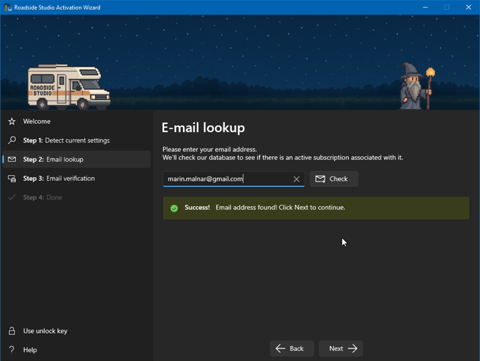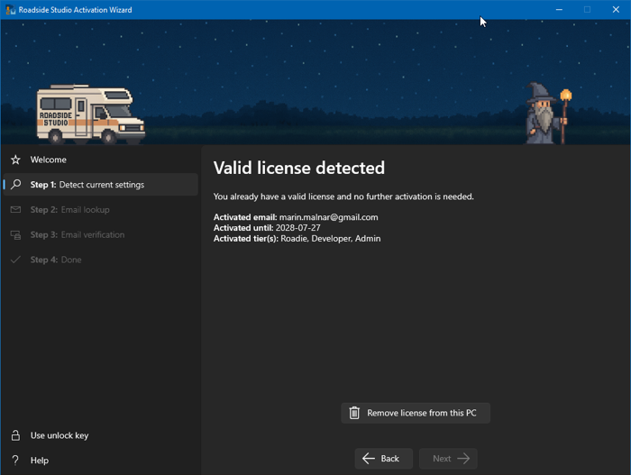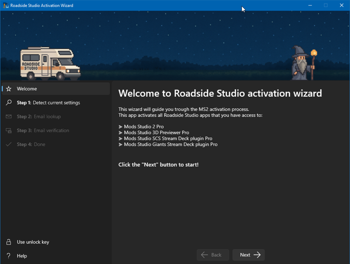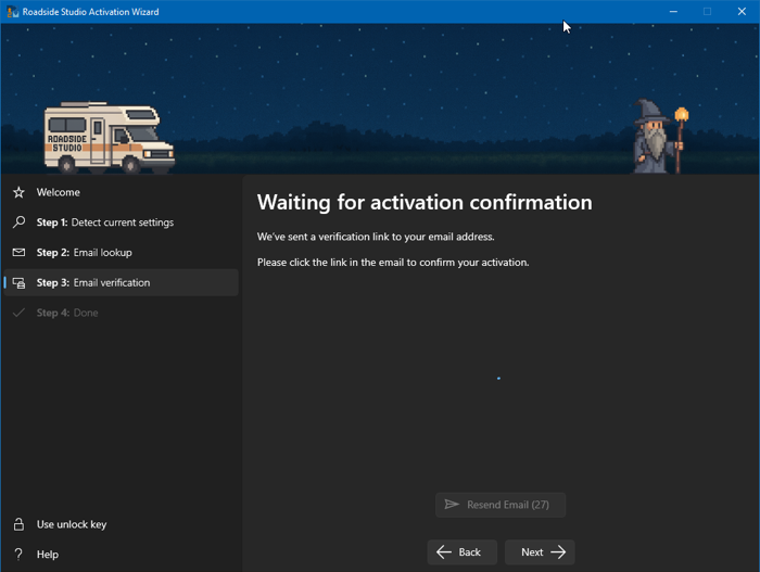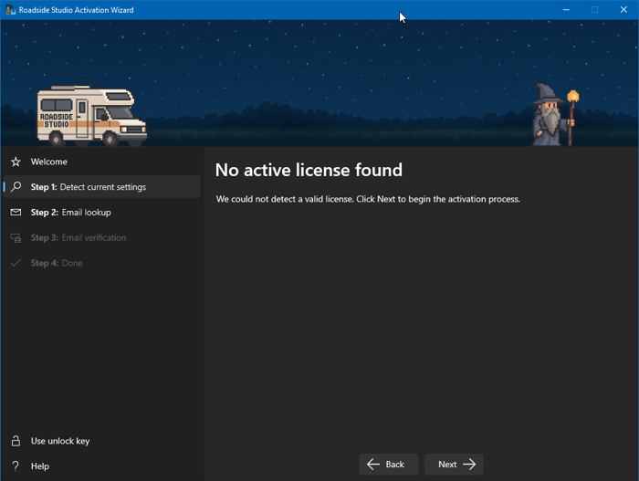 Roadside Studio Activation Wizard