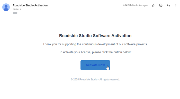 This is how the verification email message looks like. Click the blue Activate Now button, and return to the wizard app. Please check your spam folder if you do not see it in your inbox.